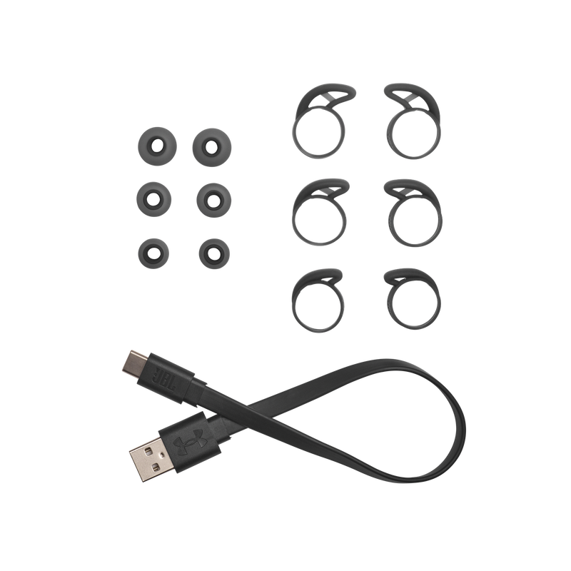 UA True Wireless Streak is engineered to maximize performance while minimizing size and distractions. A lightweight design with Sport Flex Fit ear tips provides optimized comfort and secure fit tested by athletes. UA waterproof technology delivers element-battling protection, while JBL Charged Sound is boldly tuned with rich bass for motivation. Bionic Hearing features TalkThru Technology to quickly interact with your workout partner, and Ambient Aware Technology to hear your surroundings. A quick tap provides seamless controls, and reflective accents allow you to stay seen. A pocketable charging case provides 18 hours of total playtime, powering you to achieve your personal best.