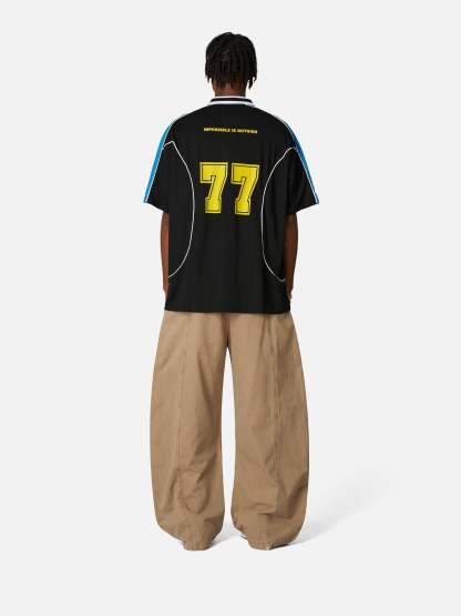 This jersey energy with a bold V-neckline, varsity-style stripes, and contrast color-blocking. The standout back print features a bold “77” and the empowering motto: “Impossible is Nothing.”