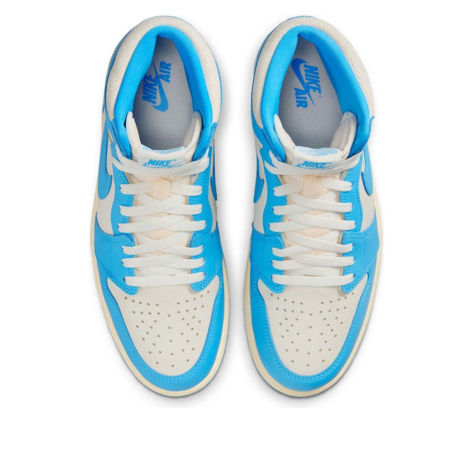 Reimagine the iconic Air Jordan 1. This UNC edition boasts a fresh take on the classic blue and white, featuring premium leather, aged detailing, and a vintage-inspired box. A perfect blend of heritage and modern style, it's a must-have for any sneakerhead.