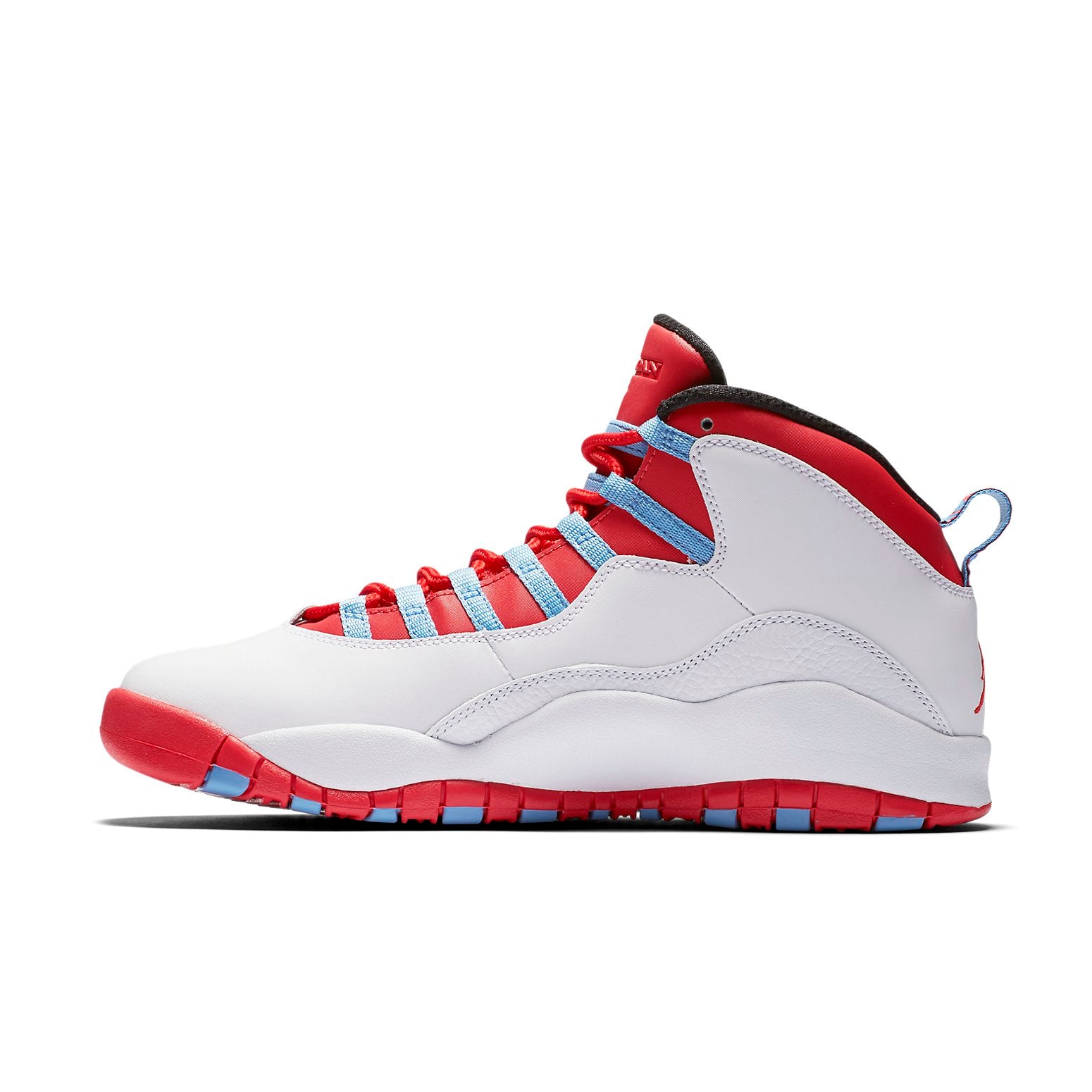 Part of Nike's 2016 Jordan 10 'City Pack' Collection, the Air Jordan 10 Retro 'City Pack - Chicago' is a must-have for any Chicago sports fan. This limited edition colorway was only available in select cities, and each city's colorway was inspired by the city's sports heritage. The Air Jordan 10 Retro 'City Pack - Chicago' is inspired by the city's flag, and is a nod to the city's rich sports history. This limited edition sneaker pays tribute to Chicago, with the city's name embroidered on the ankle instead of the traditional '23/45' number.