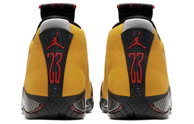 The Air Jordan 14 Retro is a sneaker that was first introduced in 1998. It takes inspiration from Michael Jordan's Italian sports car, with a University Gold leather upper that pays homage to the car's racing heritage. The bold Jumpman seals and '23' heel embroidery add a touch of luxury, while the tire-inspired midsole, dual Zoom Air units, and herringbone tread provide superior comfort and performance.