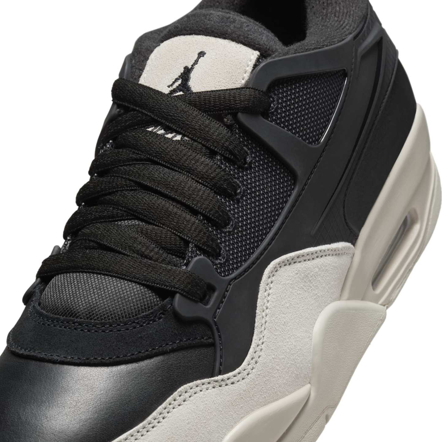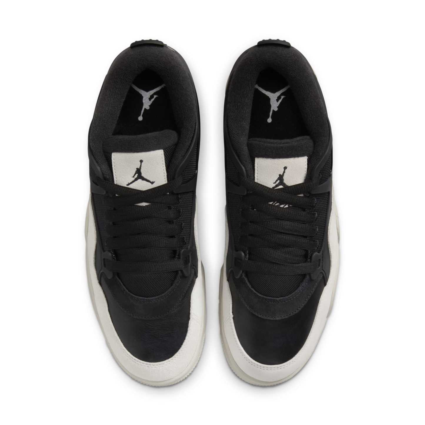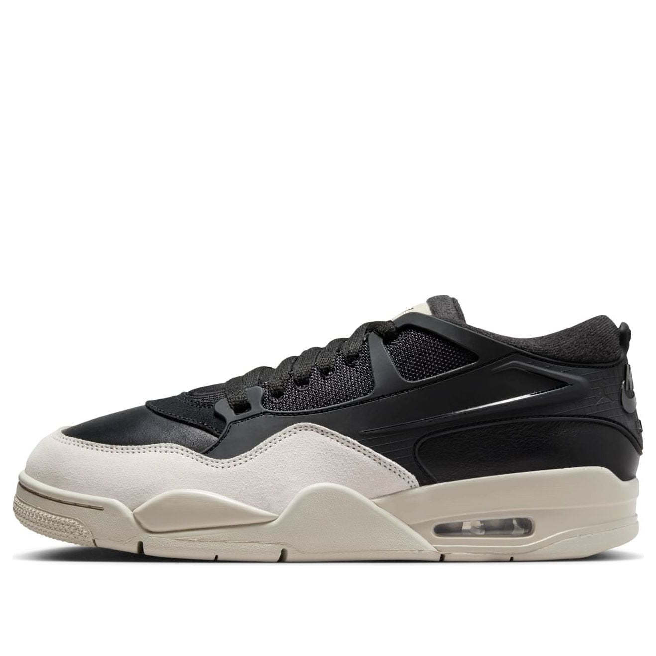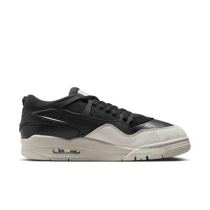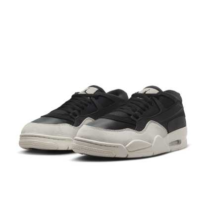 The Air Jordan 4 RM 'Black Light Bone' is a unique twist on the classic Air Jordan 4 silhouette. This low-top sneaker features a versatile two-tone color scheme. The upper is crafted from black leather and textiles for a sleek look, with a light bone suede mudguard for added durability. A TPU cage wraps around the heel for a bold look and enhanced midfoot support. This special edition Jordan 4 is perfect for those who want a fresh take on a timeless design.