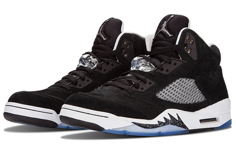 The Air Jordan 5 Retro 'Oreo' features a black nubuck upper with white details and a speckled midsole. This special edition of the silhouette was released in November of 2013 to celebrate the 23rd anniversary of the Air Jordan 5. The design also includes an anthracite tongue with a '23' embroidered on the lateral side of the upper near the heel, and an ice blue translucent outsole. The Oreo colorway is one of the most popular amongst Jordan fans, and this retro version is sure to be a hit with sneakerheads everywhere. Get your hands on this classic shoe before it's gone!