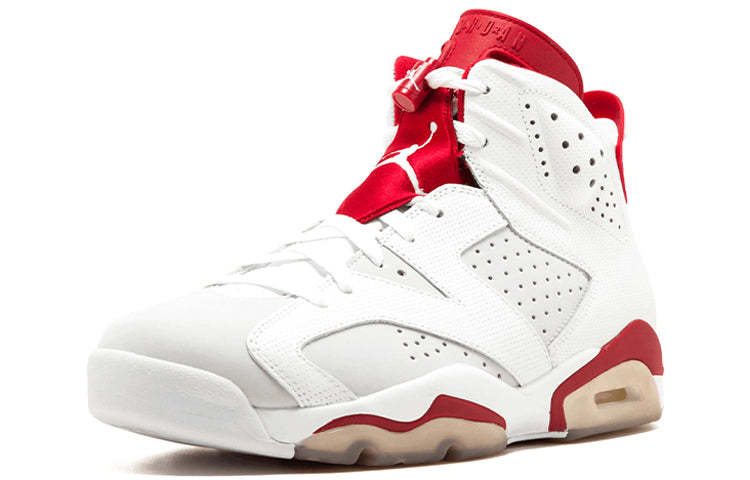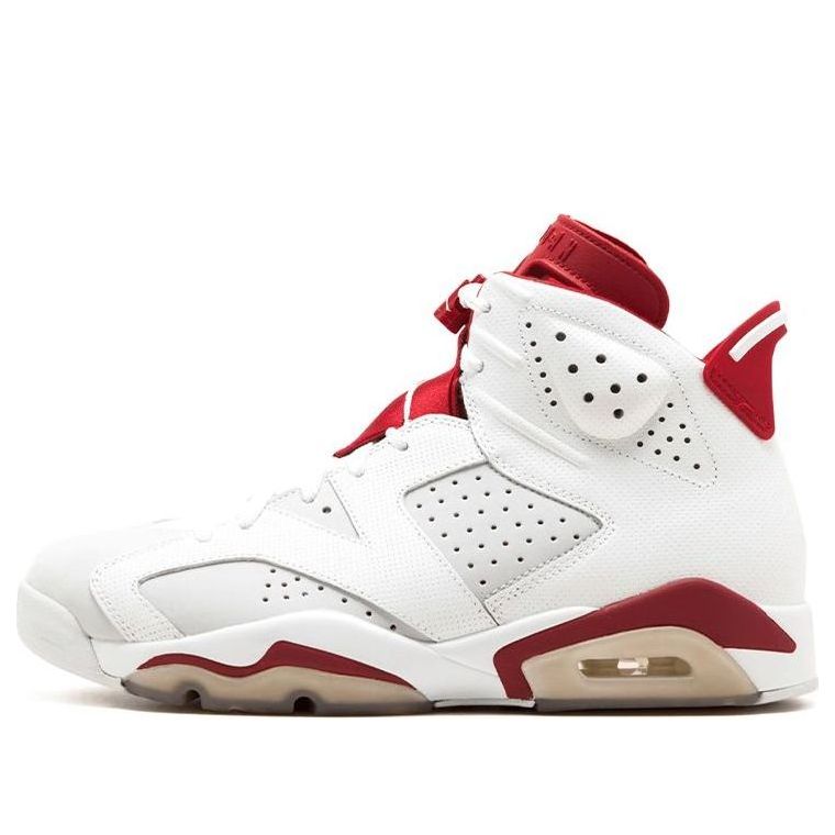 The Air Jordan 6 Retro is a classic sneaker with a modern twist. This 2017 retro features a white and light grey perforated nubuck leather base, with "Gym Red" accents throughout. The shoe also includes 1991 stitched on the inner tongue, and Jumpman branding on the tongue, lace overlay, and heel section. This sneaker is perfect for anyone who wants a stylish, comfortable, and versatile sneaker. With its clean lines and simple colorway, the Air Jordan 6 Retro can be worn with any outfit.