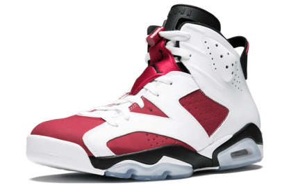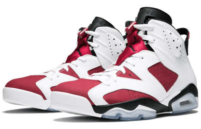 The Air Jordan 6 Retro 'Carmine' is one of the most popular colorways of the iconic sneaker. First released in 1991, the 'Carmine' 6s quickly became a favorite among sneakerheads. Jordan himself wore the shoes during his first NBA championship run, cementing their status as a legend among basketball sneakers. The 'Carmine' 6s remain one of the most sought-after pairs of Jordans to this day. Nike retroed the shoes in 2008 and again in 2014, and each time they've been met with overwhelming demand. The shoes feature a white and red perforated nubuck leather upper, providing both style and comfort.
