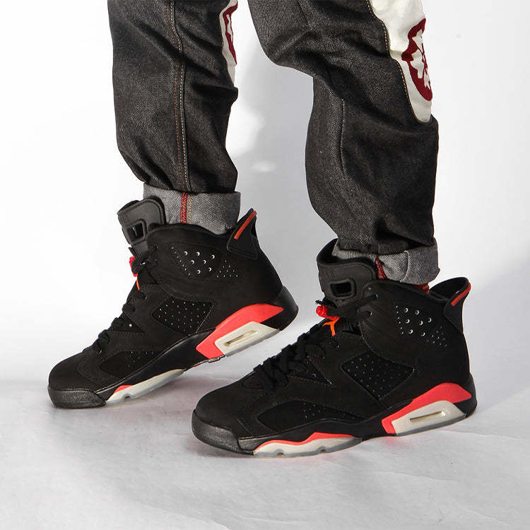 The Air Jordan 6 Retro is one of the most iconic sneakers of all time. First released in 1991, the shoe was created by none other than Michael Jordan himself. The Air Jordan 6 quickly gained popularity for its unique design and comfortable fit, and has been retroed several times since its initial release. The most recent retro, released in 2014, features an all-black perforated upper in nubuck leather with infrared accents throughout. The reflective upper underlay is a throwback to the original release, and makes this sneaker truly unique.