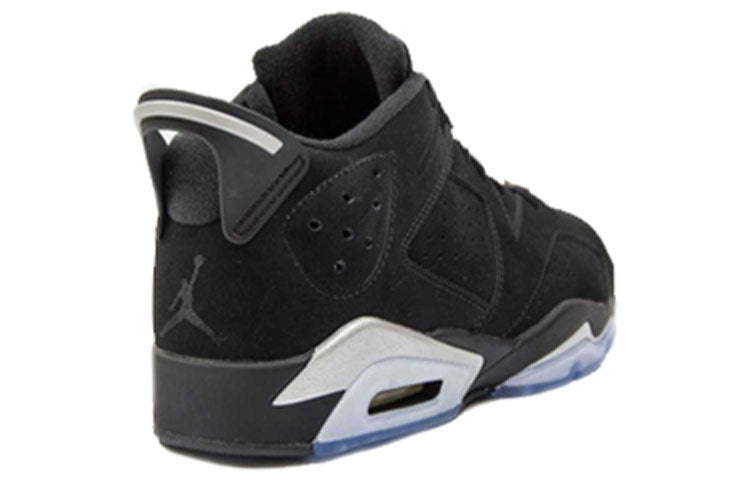The Nike Air Jordan 6 Retro Low 'Chrome' is a sleek and stylish sneaker that was originally released in 2002. Featuring an all-black suede upper with metallic silver Jumpman branding, lace locks, heel tab, and midsole, this sneaker is sure to turn heads. The icy blue translucent outsole adds a unique touch to this already stylish sneaker.