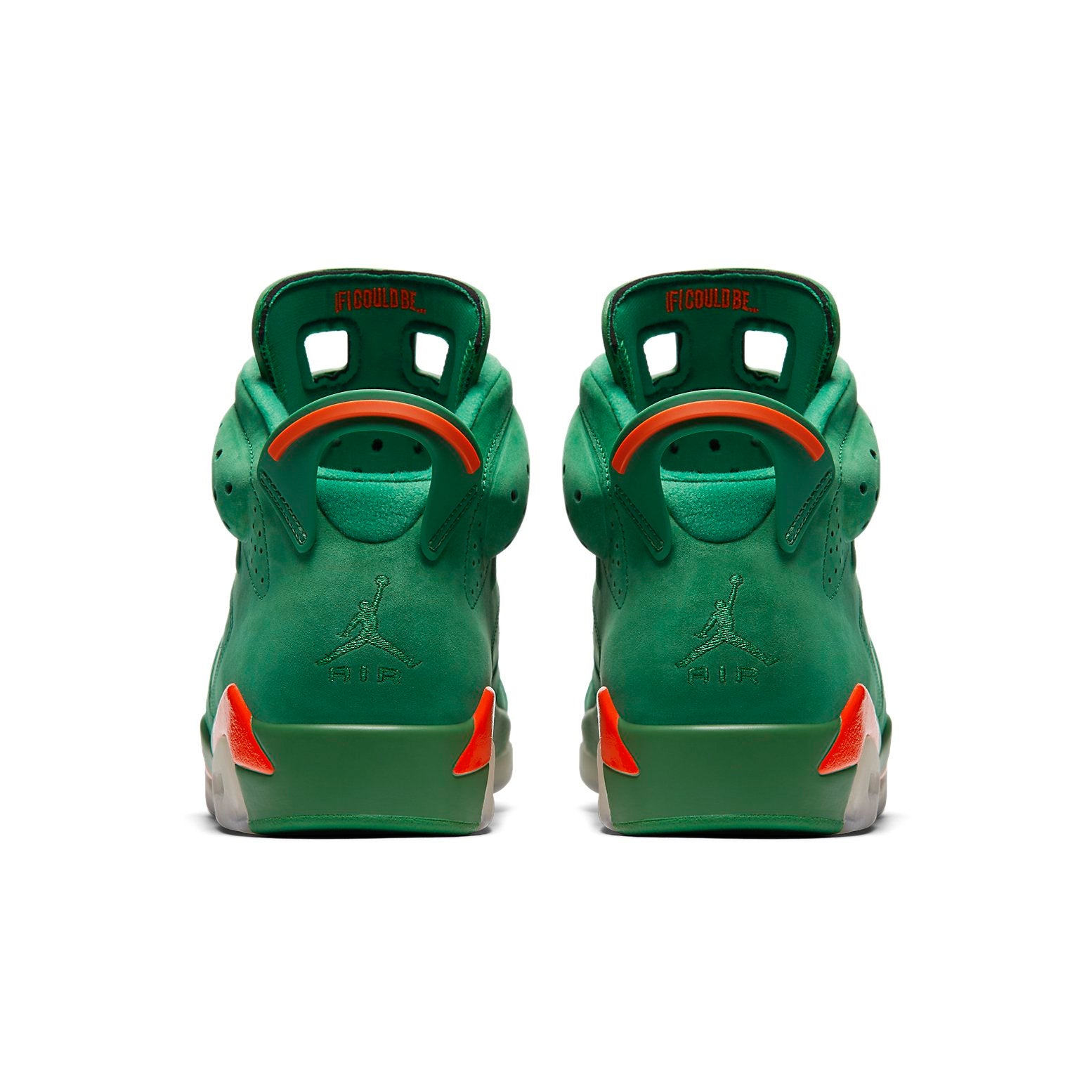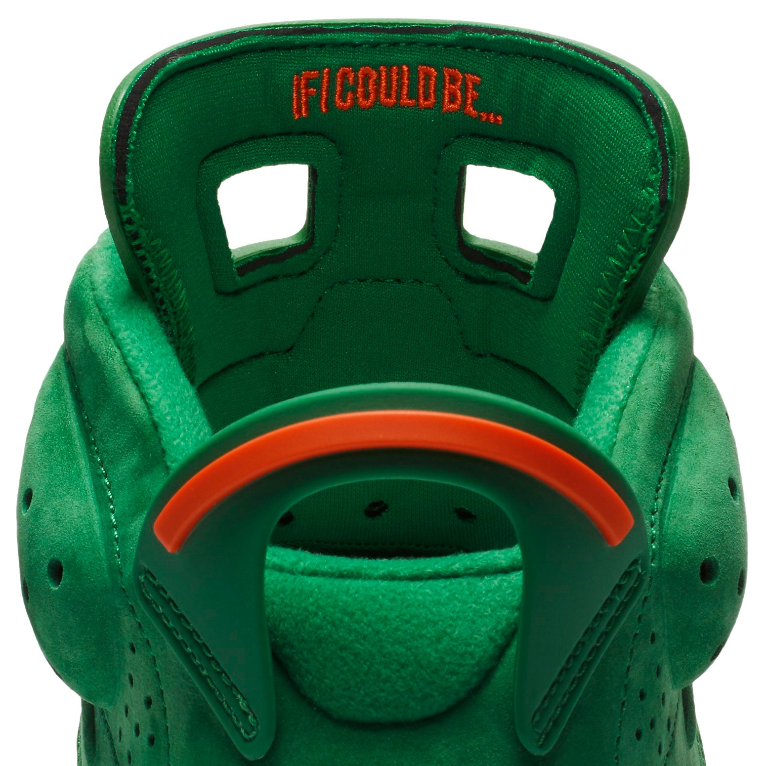 To commemorate Michael Jordan’s 1991 iconic ‘Like Mike’ Gatorade commercial, Nike debuts the Nike Air Jordan 6 Retro NRG in Green Suede. The exterior is outfitted with a bold green, white and orange colorway. It features a sports bottle-inspired lace lock, perforated suede upper and supportive Air unit sole. The sneaker is accented with a Gatorade-branded insole and “If I Could Be” embroidered on the interior of the tongue. SKU: AJ5986-335 Release Date: 31 Dec 2017 Color: Pine Green/Orange Blaze-Pine Green