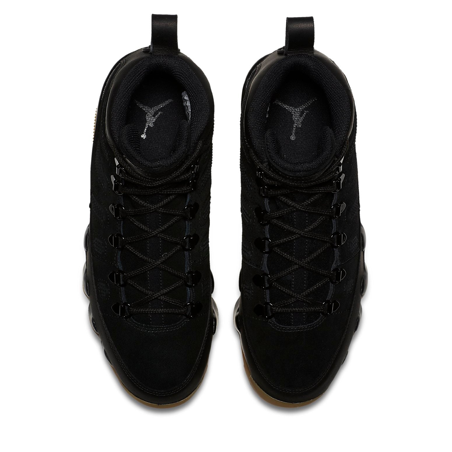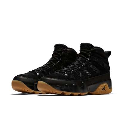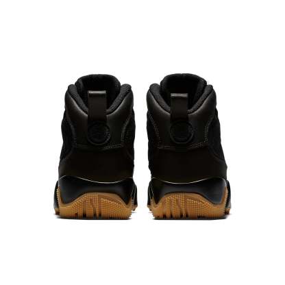 The Air Jordan 9 Retro Boot NRG 'Black Gum' is a stylish take on the classic Air Jordan 9 sneaker. Featuring a black suede upper with a black leather mudguard, this boot-like sneaker is perfect for those cold winter days. Finished with a water-resistant coating, the Air Jordan 9 Retro Boot NRG 'Black Gum' also comes with metal eyelets, a gusseted tongue, and a rugged gum rubber outsole.