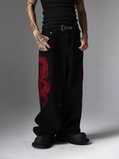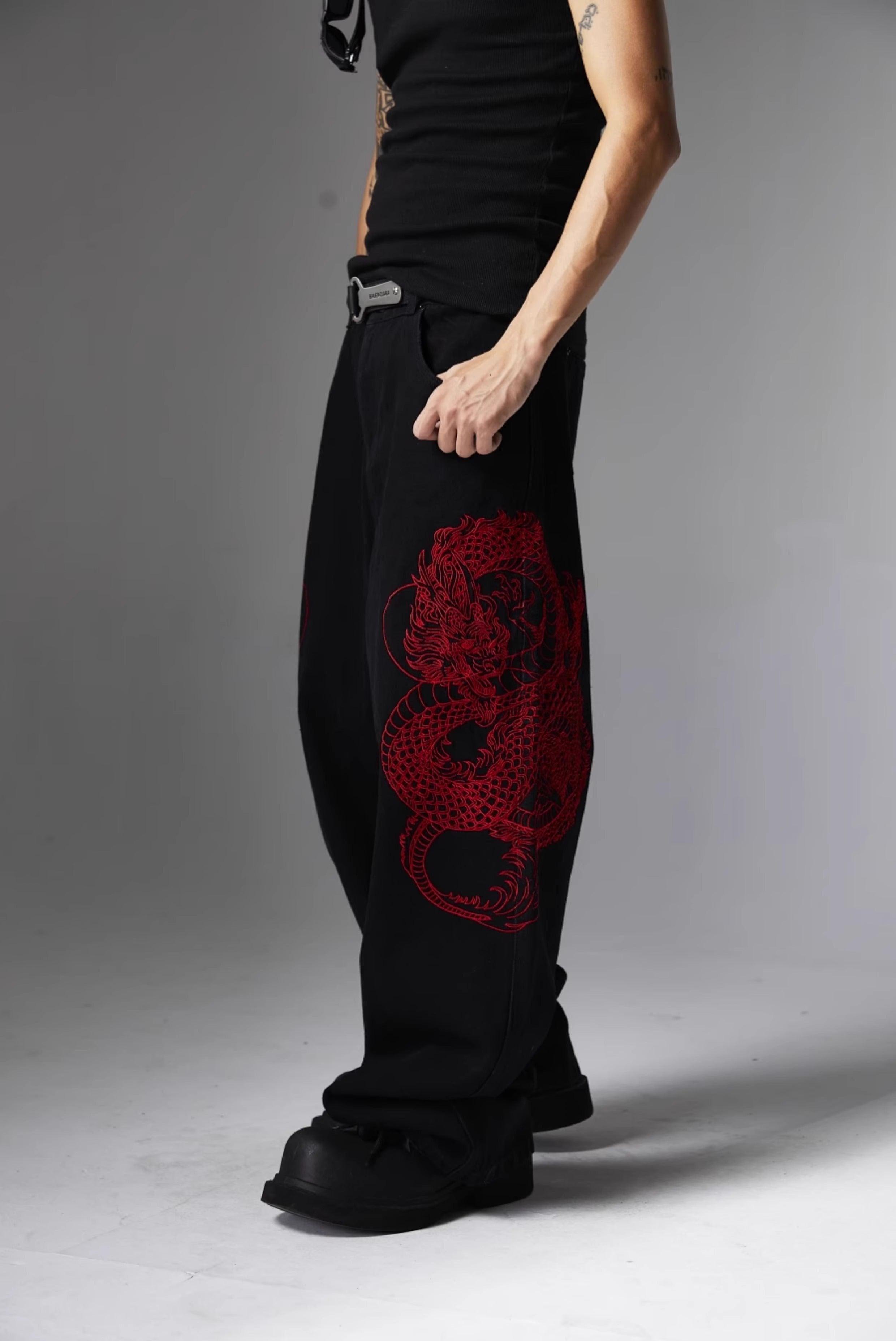 ATSF30 Embroidered Dragon Totem Jeans