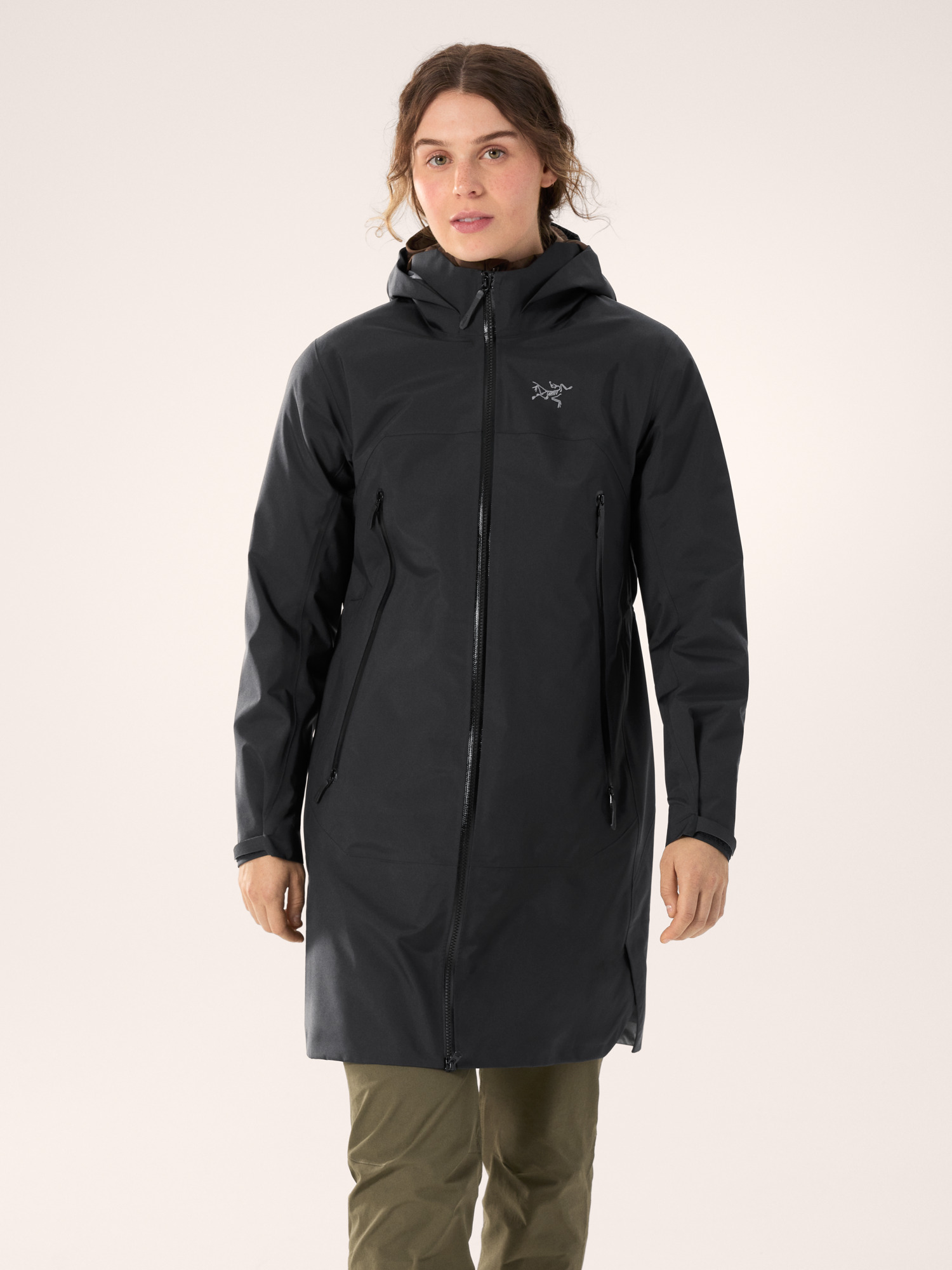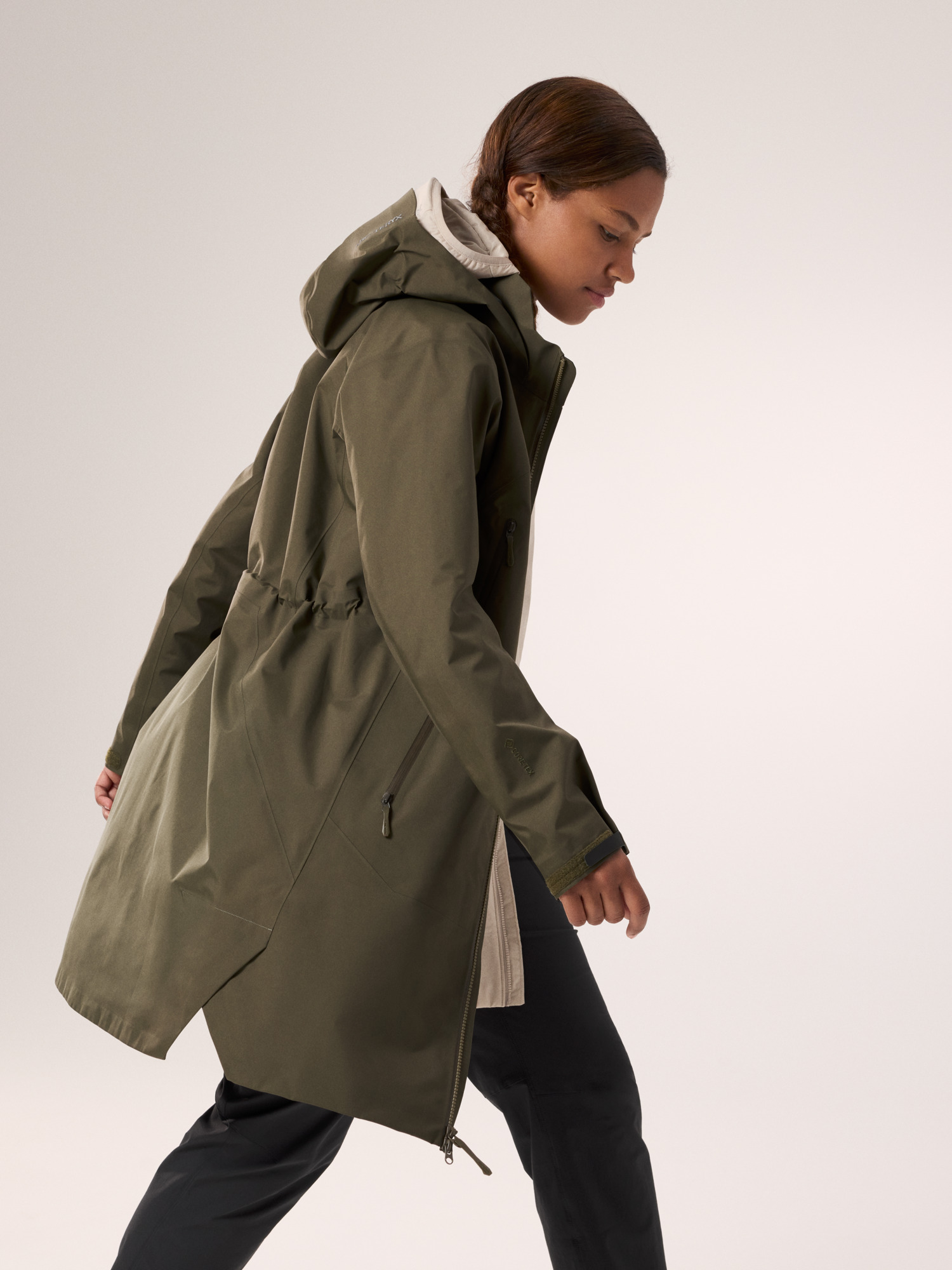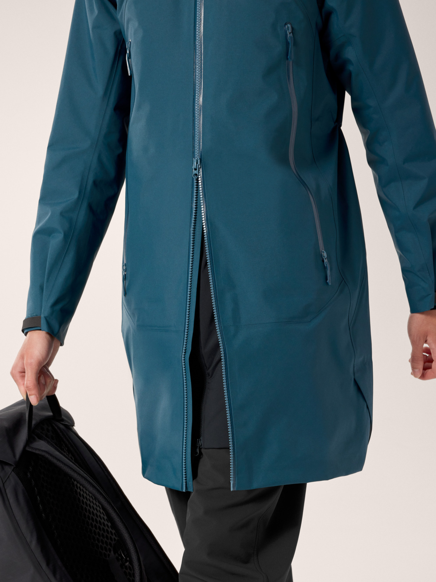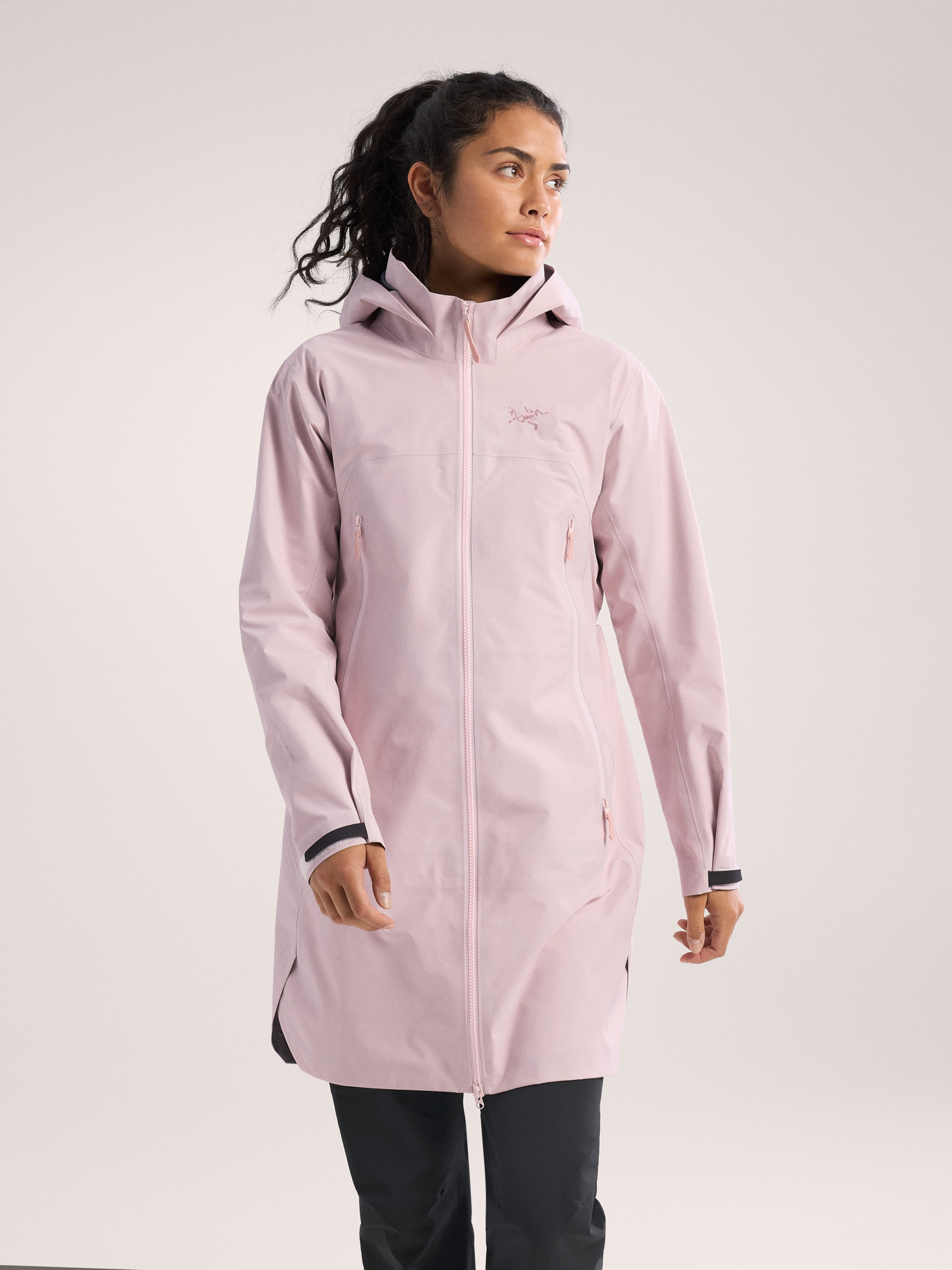 The Beta Coat brings all-mountain protection with a lighter footprint and longer length. The PFAS-free GORE-TEX ePE fabric sheds wind, rain, and snow. Its recycled C-KNIT backer improves breathability, and the durable 80D face is made with 100% recycled nylon. Its length rides comfortably under a pack's hipbelt and aligns with longer midlayers, an adjustable DropHood provides coverage with an integrated collar to protect the neck, and the two-way front zipper gives you freedom of stride.
