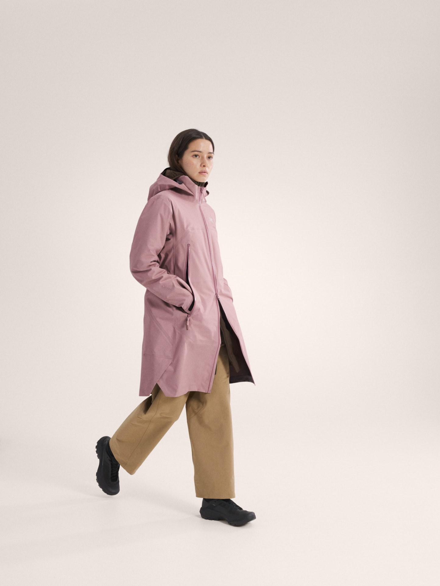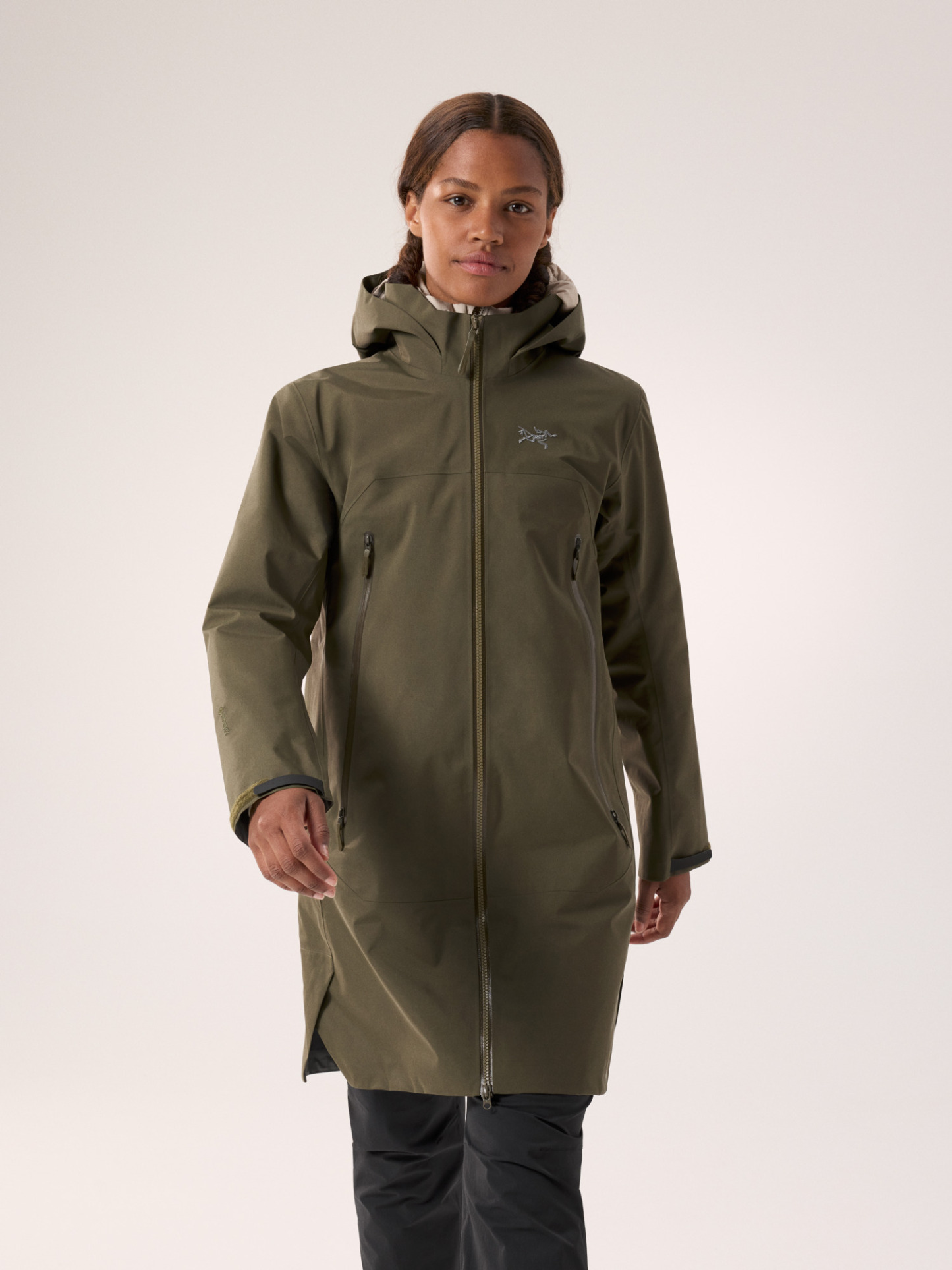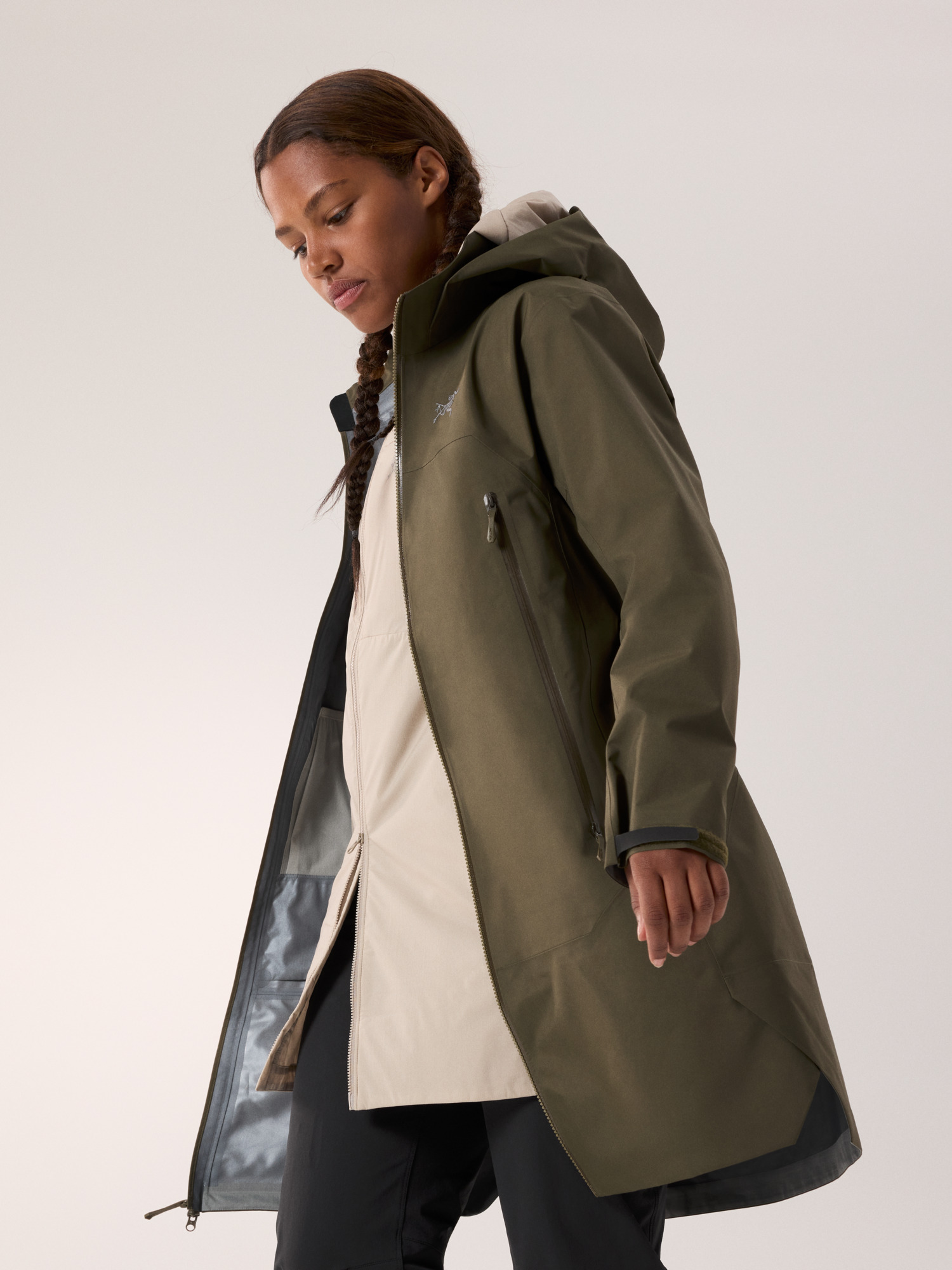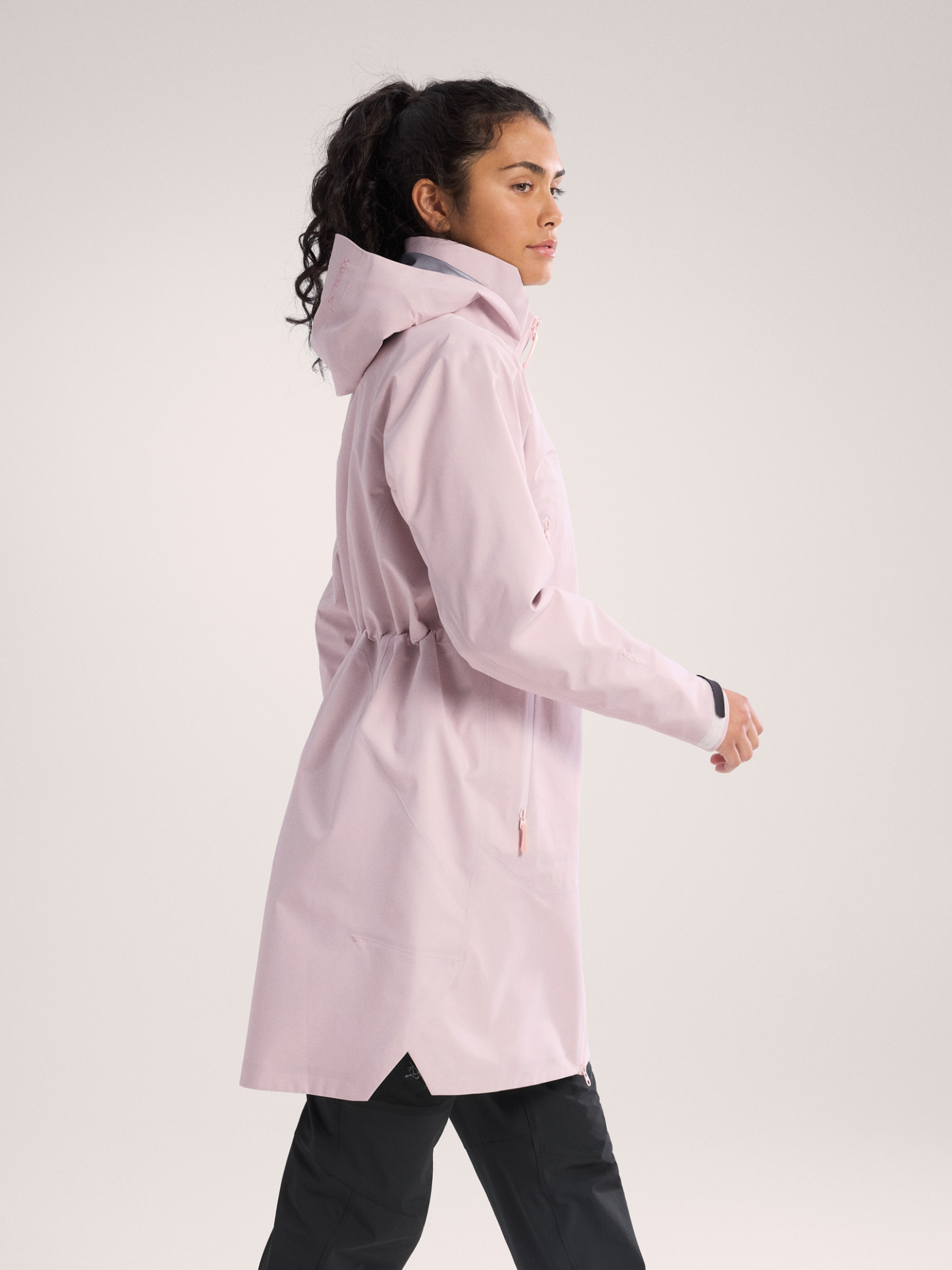 The Beta Coat brings all-mountain protection with a lighter footprint and longer length. The PFAS-free GORE-TEX ePE fabric sheds wind, rain, and snow. Its recycled C-KNIT backer improves breathability, and the durable 80D face is made with 100% recycled nylon. Its length rides comfortably under a pack's hipbelt and aligns with longer midlayers, an adjustable DropHood provides coverage with an integrated collar to protect the neck, and the two-way front zipper gives you freedom of stride.