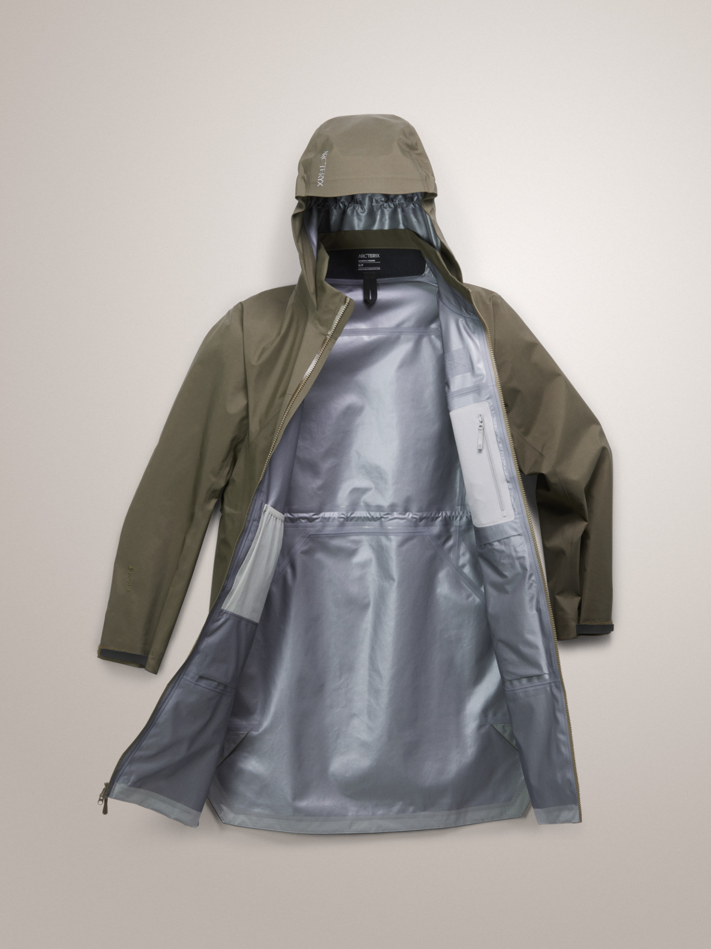 - Body: 80d 3L GORE-TEX ePE with C-KNIT™ backer, plain weave recycled nylon, FC0 DWR - 100% Nylon with ePE and PU Membrane