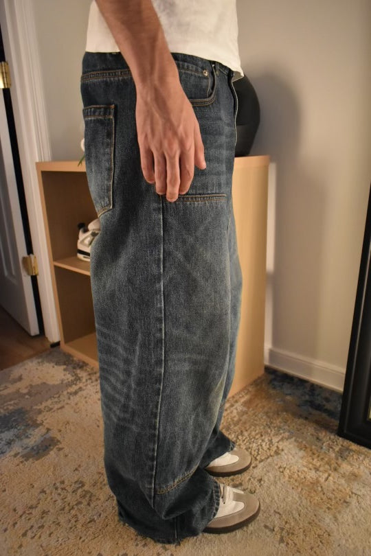 Our Blue Double Knee Denim is made from top-notch 14 oz denim that provides both durability and comfort. Constructed entirely of 100% cotton, this classic piece comes with a unique leather tag and buttons, adding a touch of personal flair to any outfit.