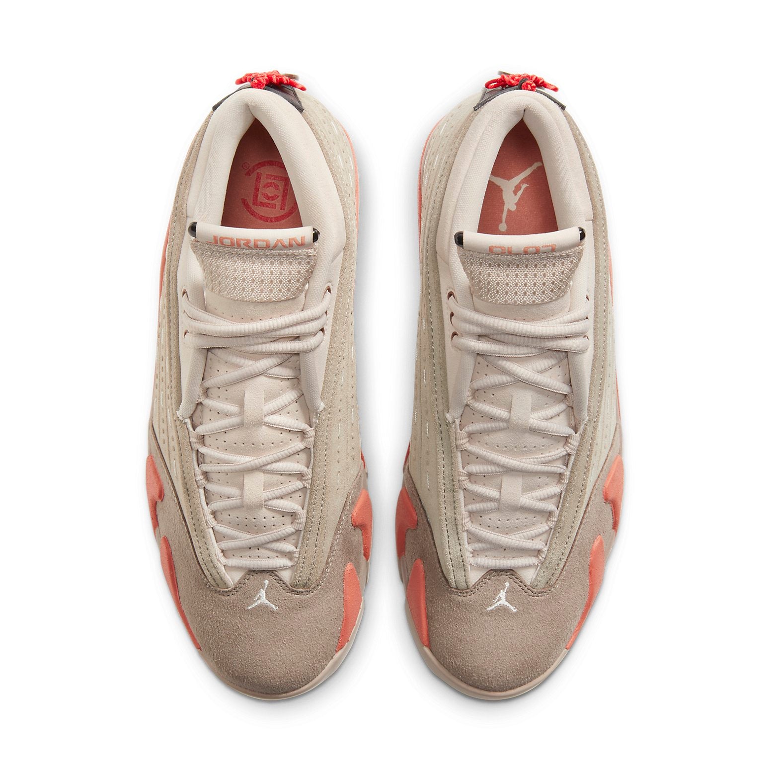 This Clot x Air Jordan 14 Low "Terra Blush" features a tan suede upper with embossed detailing that mimics protective armor. Moreover, hanging off the heel is a red Chinese knot, the end of which is threaded through a coin that’s stamped with a Chinese idiom for prosperity and happiness. SKU: DC9857-200 Release Date: 11 Feb,2021 Color: Sepia Stone/Terra Blush/Desert Sand