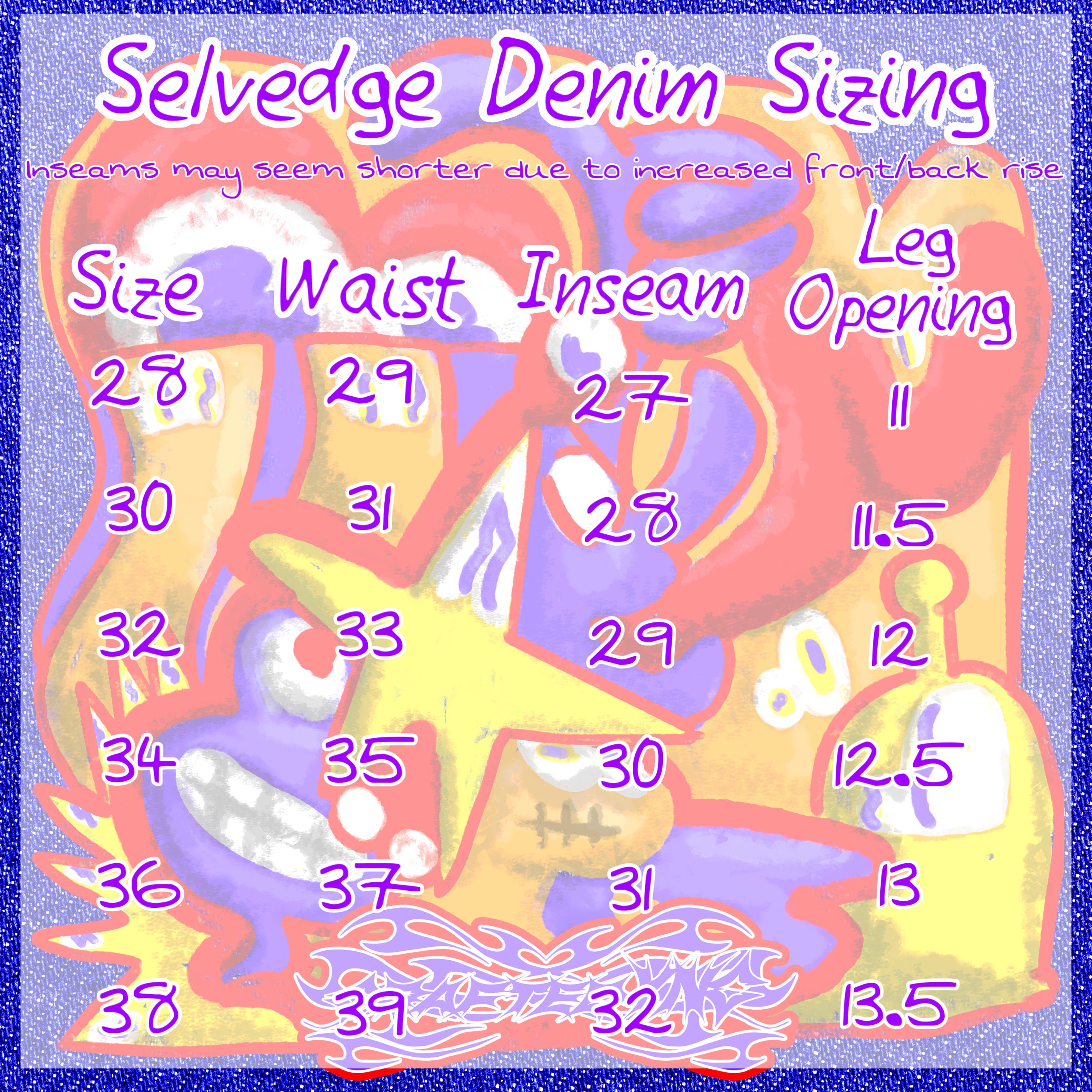 See size chart on last slide. Go true to size with waist, size up if you want to cuff them while keeping them baggy.