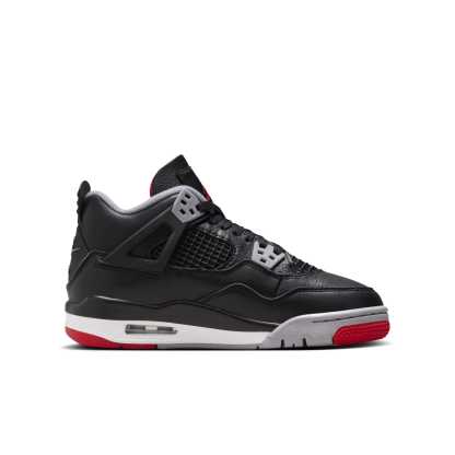 The (GS) Air Jordan 4 Retro Bred Reimagined pays homage to basketball history. This iconic sneaker revisits the legendary Bred colorway, blending black, cement grey, varsity red, and summit white for a classic yet fresh look. The “Bred Reimagined” updates the beloved silhouette by replacing the traditional nubuck upper with a supple leather one. Known for groundbreaking design and performance, the Air Jordan 4 Retro features a durable construction and supportive fit. Its iconic colorway preserves the essence of the original while offering a modern twist.