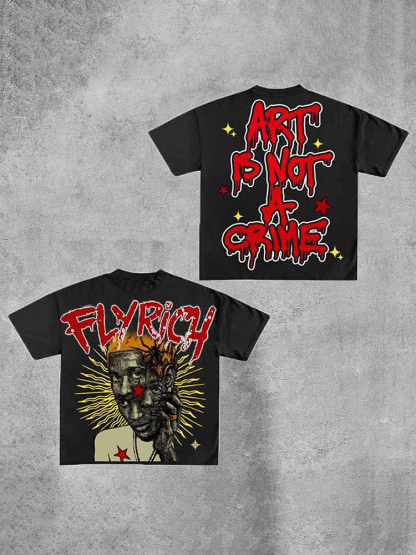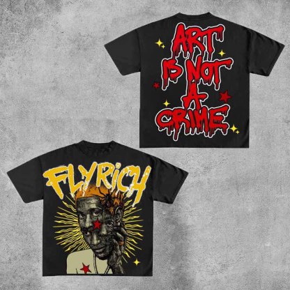 Personalized Art Is No Crime But Fly Rich Graphic 100% Cotton Short Sleeve T-Shirt