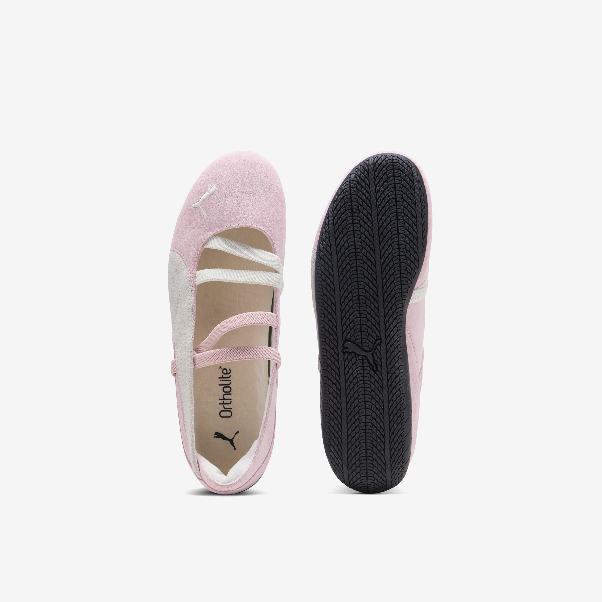Inspired by the velocity of the racetrack, the PUMA Speedcat Ballet rewrites motorsports history with a brand-new iteration of the iconic Speedcat, taking inspiration from classic ballet flats. Featuring a unique cutout Formstrip, elastic straps, and a tire tread sole, the PUMA Speedcat Ballet transforms an icon of racing culture with a chic slip-on construction, serving up effortless track-turned-street style.