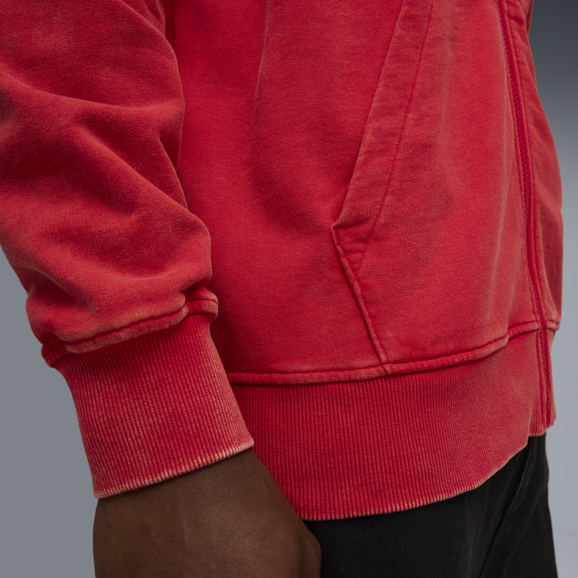 Model is 6' 1" tall and is wearing size M.