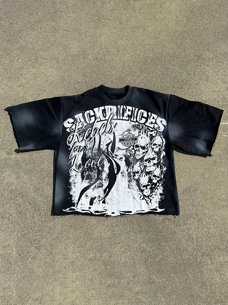 Street Flame Skull Graphics Casual Boxy Crop Tee