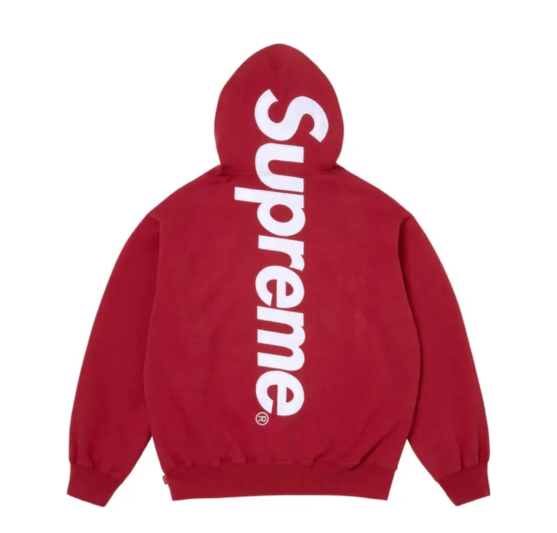 The Supreme Satin Applique Hooded Sweatshirt in Dark Red from the FW25 collection embodies bold sophistication. Expertly crafted from a premium heavyweight cotton blend, this standout piece features the iconic satin appliqué logo in a tonal contrast, enhanced by the deep crimson hue unique to this season. Designed for lasting comfort and street-ready style, it includes an adjustable drawstring hood, a roomy front pocket, and Supreme's signature fit—updated for modern wear.