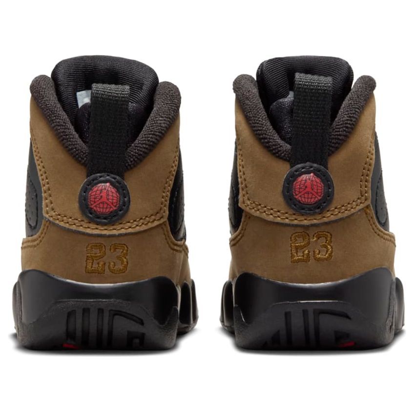 The Air Jordan 9 Olive Black True Red is a classic colorway that blends style and history. Originally released in the early '90s, this shoe represents a unique moment in Michael Jordan's career. The olive base with black overlays and vibrant red accents create a rugged yet sophisticated look. This coveted silhouette features iconic details like the "23" on the heel and a globe emblem, reflecting Jordan's global influence. The Air Jordan 9 Olive Black True Red is a timeless design that continues to inspire sneaker enthusiasts.