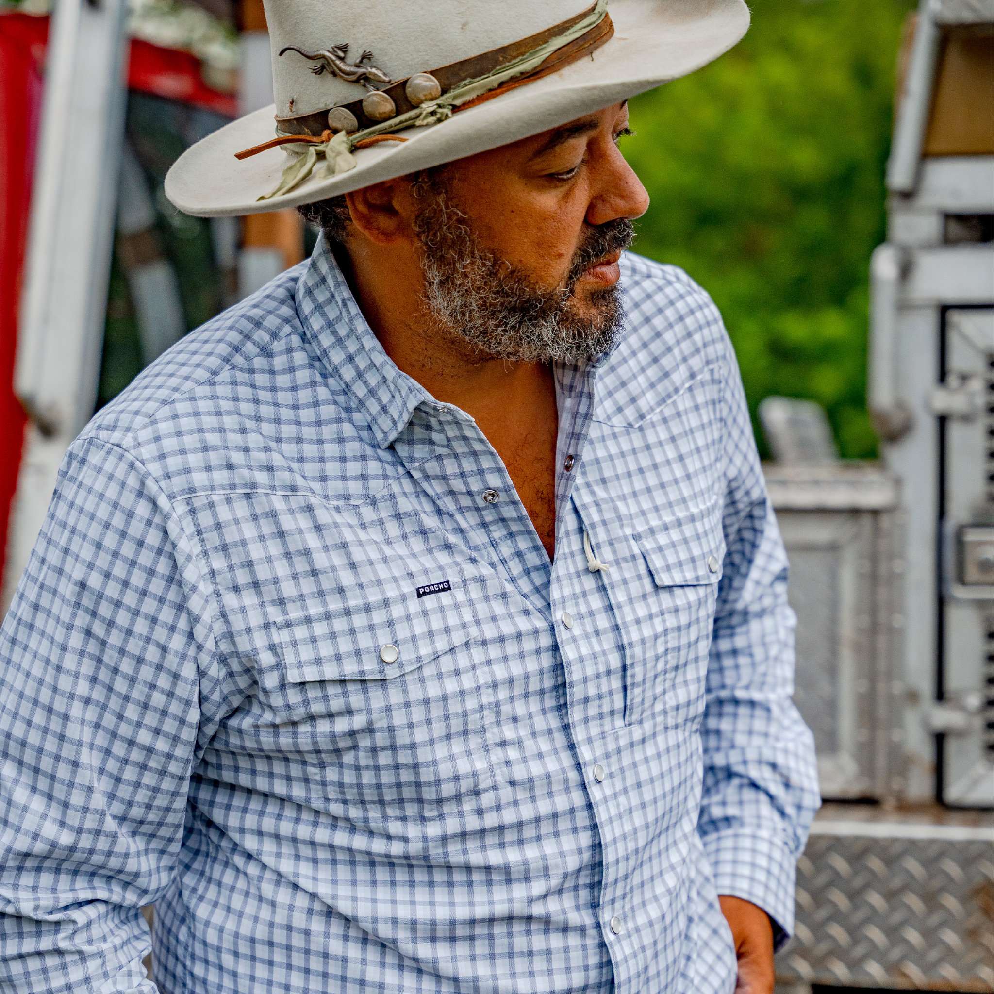 Our classic western shirts are made with the same breathable, lightweight, and quick-drying fabric you love from Poncho, so you’ll be comfortable until the cows come home. It’s got built-in sun-protection and tons of functional details to help while you’re working up a sweat. Plus, we’ve added pearl snaps and western styling, so you’ll be fit for any frontier.
