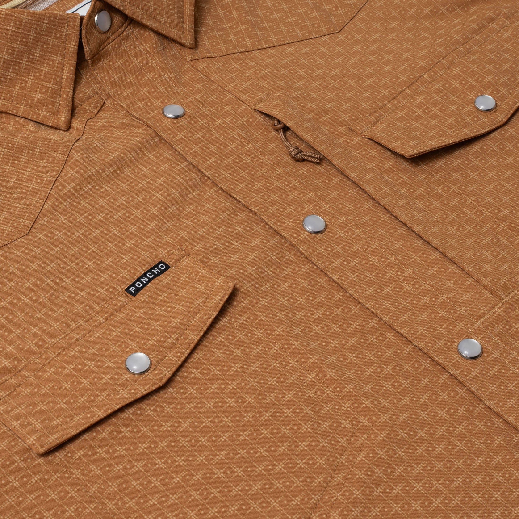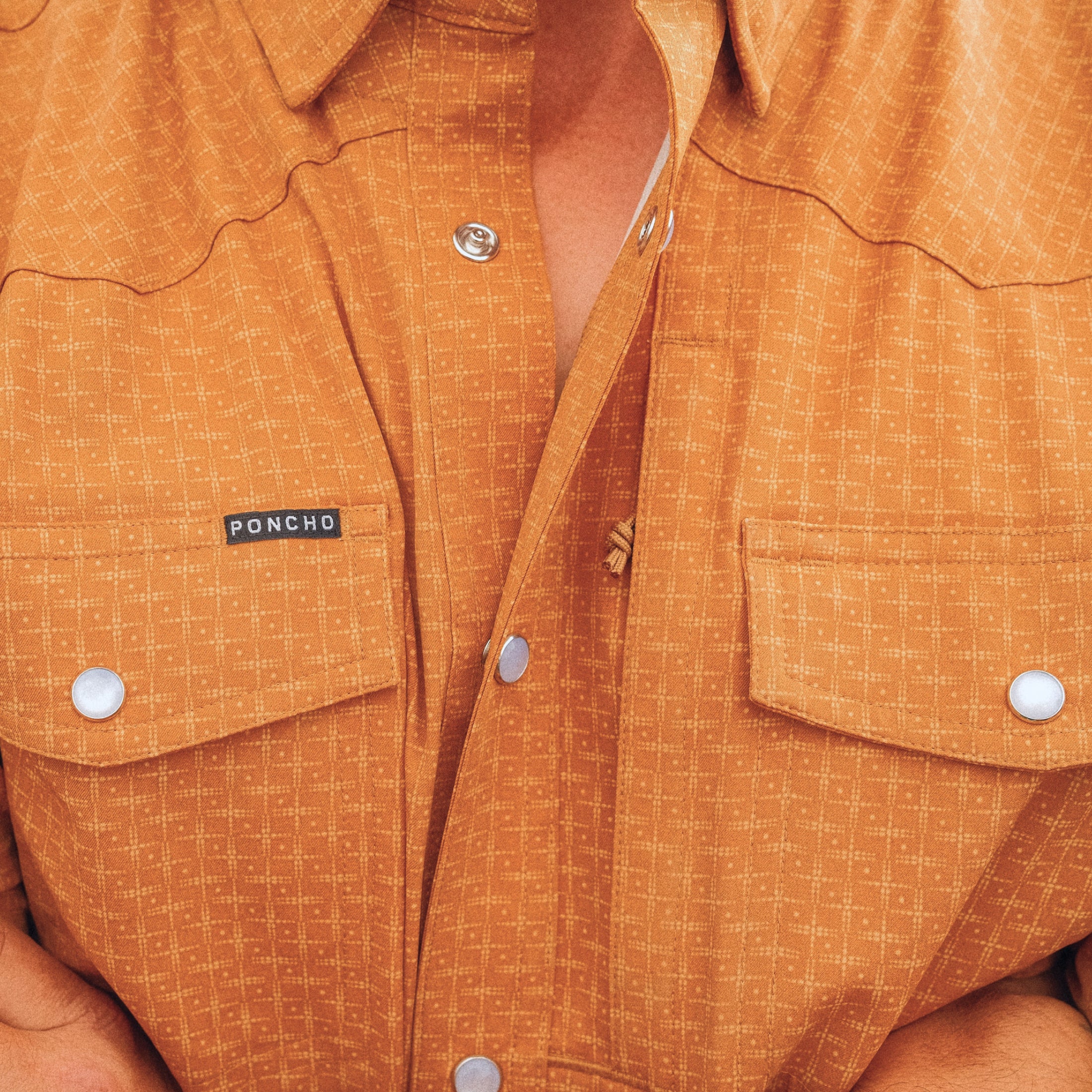 Our classic western shirts are made with the same breathable, lightweight, and quick-drying fabric you love from Poncho, so you’ll be comfortable until the cows come home. It’s got built-in sun-protection and tons of functional details to help while you’re working up a sweat. Plus, we’ve added pearl snaps and western styling, so you’ll be fit for any frontier.