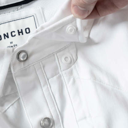 Our classic western shirts are made with the same breathable, lightweight, and quick-drying fabric you love from Poncho, so you’ll be comfortable until the cows come home. It’s got built-in sun-protection and tons of functional details to help while you’re working up a sweat. Plus, we’ve added pearl snaps and western styling, so you’ll be fit for any frontier.