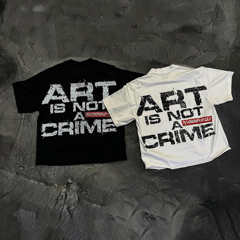 Vintage Art Is Not Crime Printed Graphic 100% Cotton Short Sleeve T-Shirt