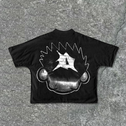 Vintage Dim Smiley Face Portrait Print Graphic Cropped T-Shirts