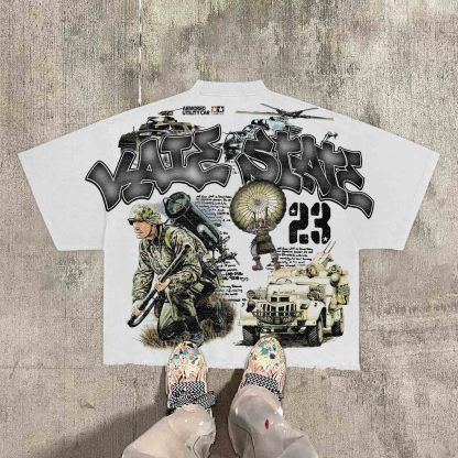 Vintage Warzone 23 Peace Graphic 100% Cotton T-Shirt Cropped Tee