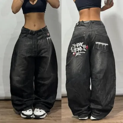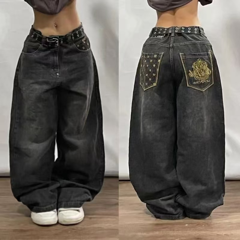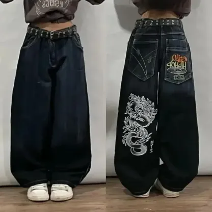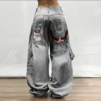 American Retro Cleanfit Fashion Print Baggy Jeans Women's Y2K Popular Casual Joker Gothic High Waist Wide-Leg pants Street Wear
