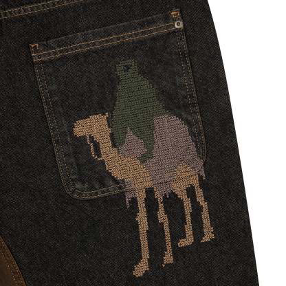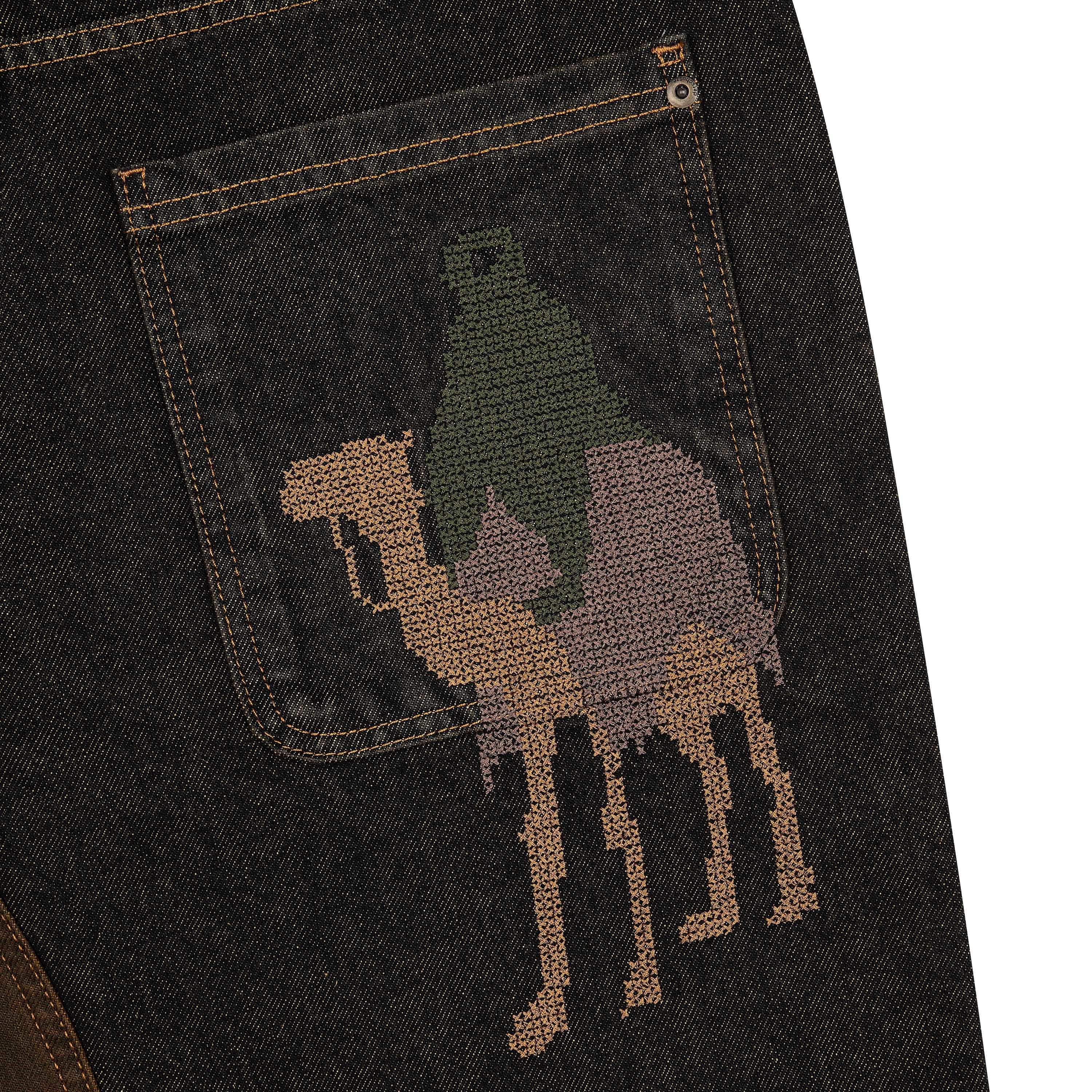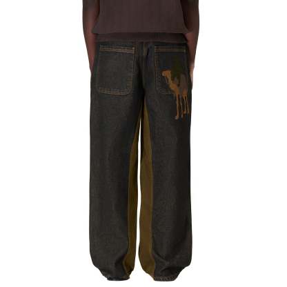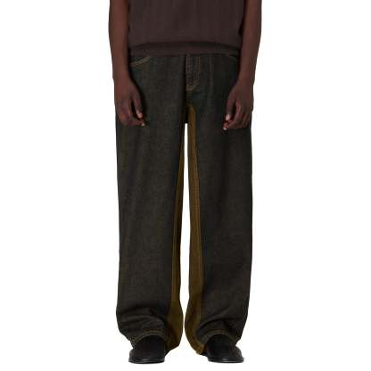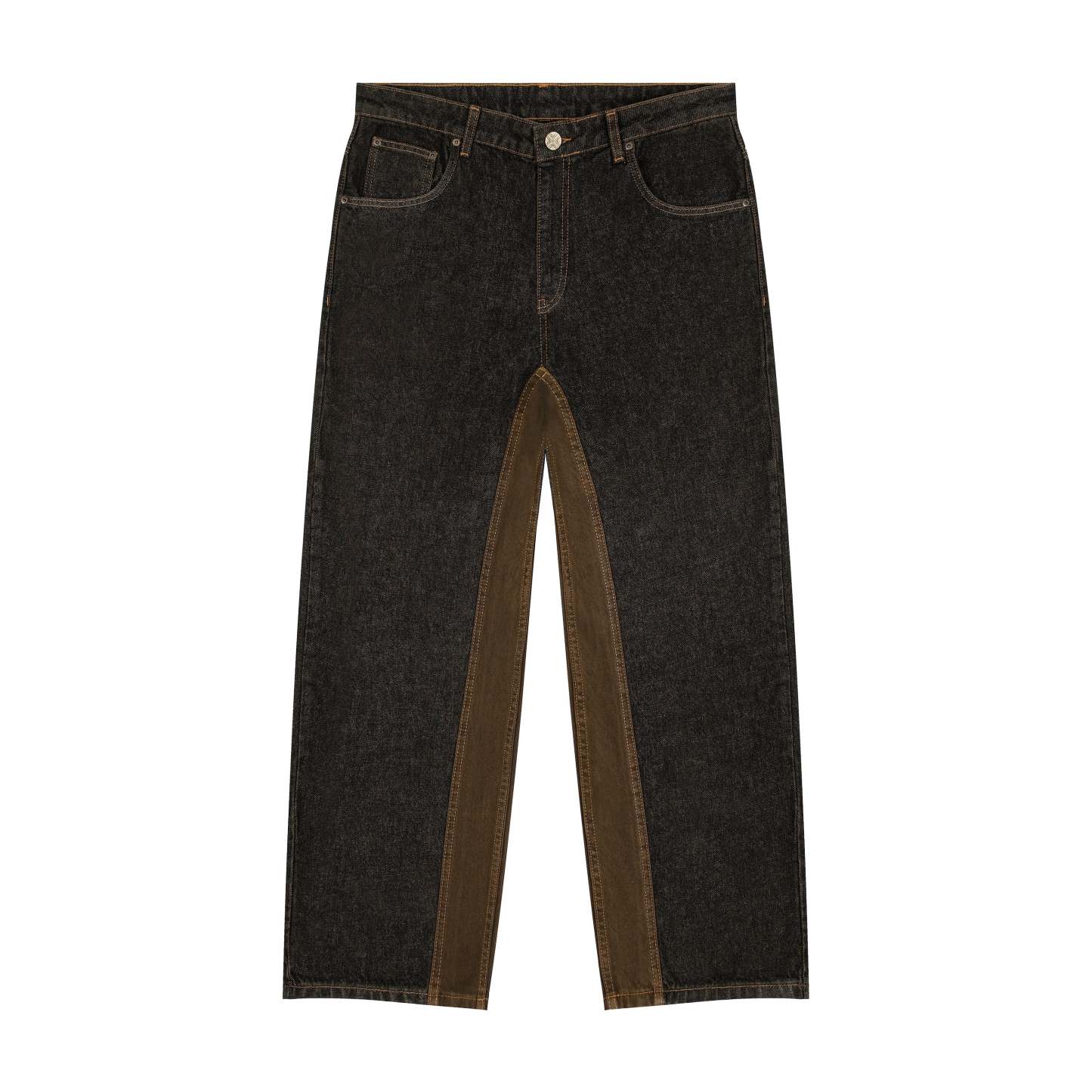 14,5oz denim / 100% cotton / inseam pieces / embroidery on back / debossed printed leather patch / custom button / black tinted washing effect / wash inside out / wash inside out / fits true to size