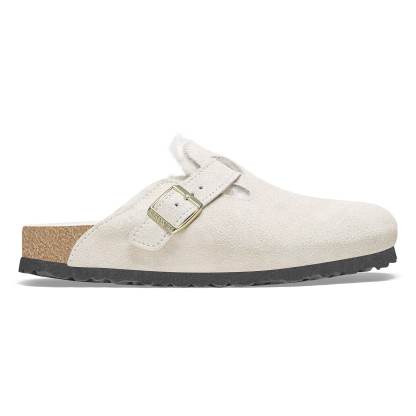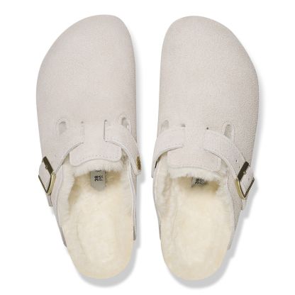 The Boston clog, made cozy for the colder months. Classic suede lends a velvety feel that continues on the inside. The style is fully lined in genuine shearling, right down to the original contoured footbed. A soft, supportive landing every time.