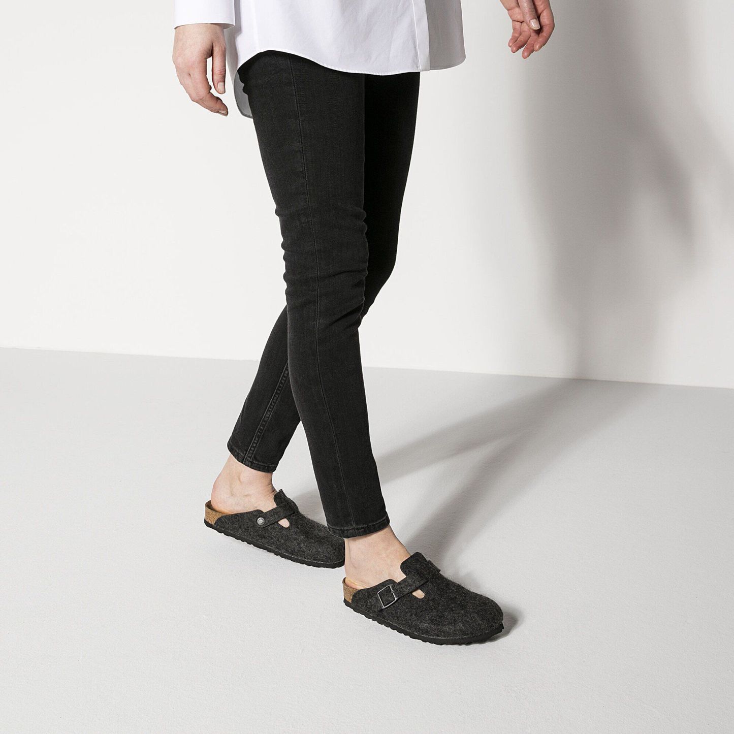 Our most classic, versatile clog takes on one of the season's top fabrics. The Boston gives you an easy, slip-on design that feels instantly laid-back in soft wool felt. Complete with legendary BIRKENSTOCK design elements, like a contoured cork-latex footbed for the ultimate in support.