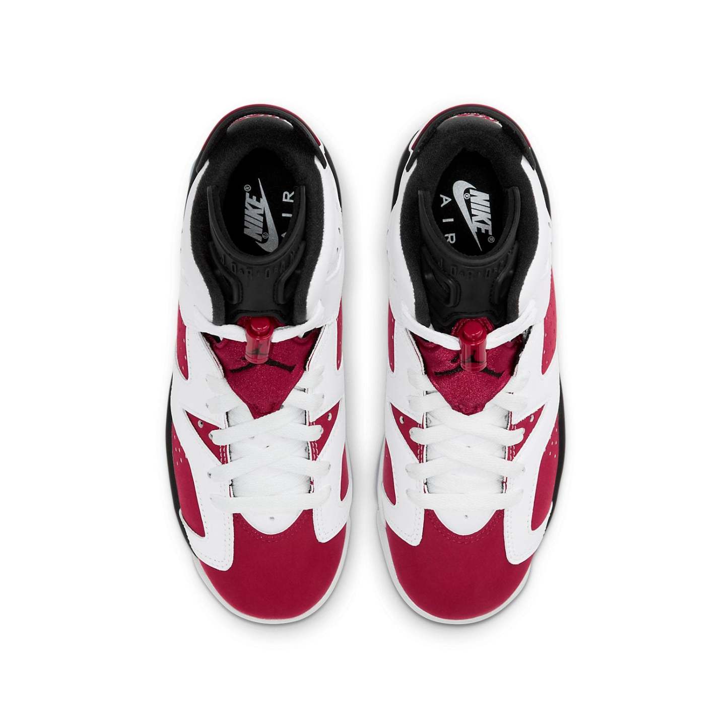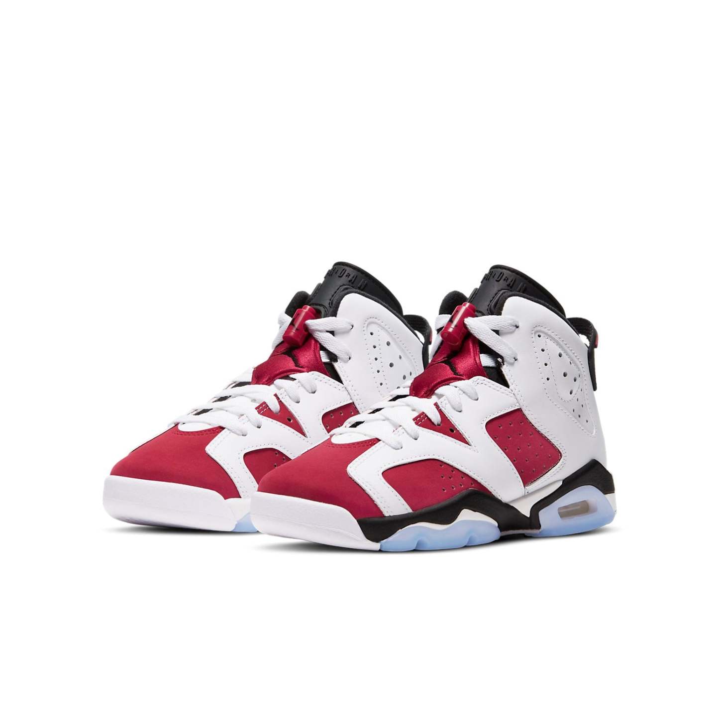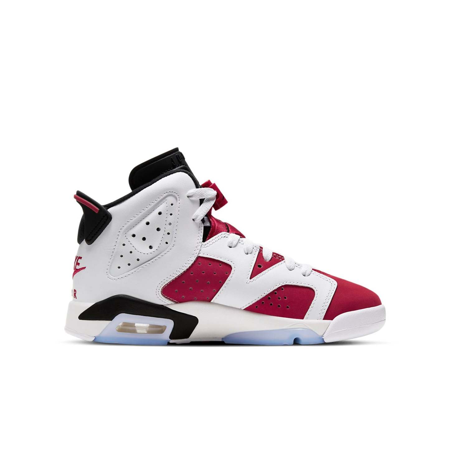 The 2021 reissue of the Air Jordan 6 Retro GS ‘Carmine’ is sure to turn heads. Constructed for big kids, this sneaker is made with a red synthetic nubuck upper and white leather overlays throughout the midfoot. The matching white leather collar and heel are embellished with Nike Air branding for an OG touch. The mid-top rides on a lightweight polyurethane midsole, enhanced with a visible Air sole unit in the heel and reinforced underfoot with an icy translucent rubber outsole.
