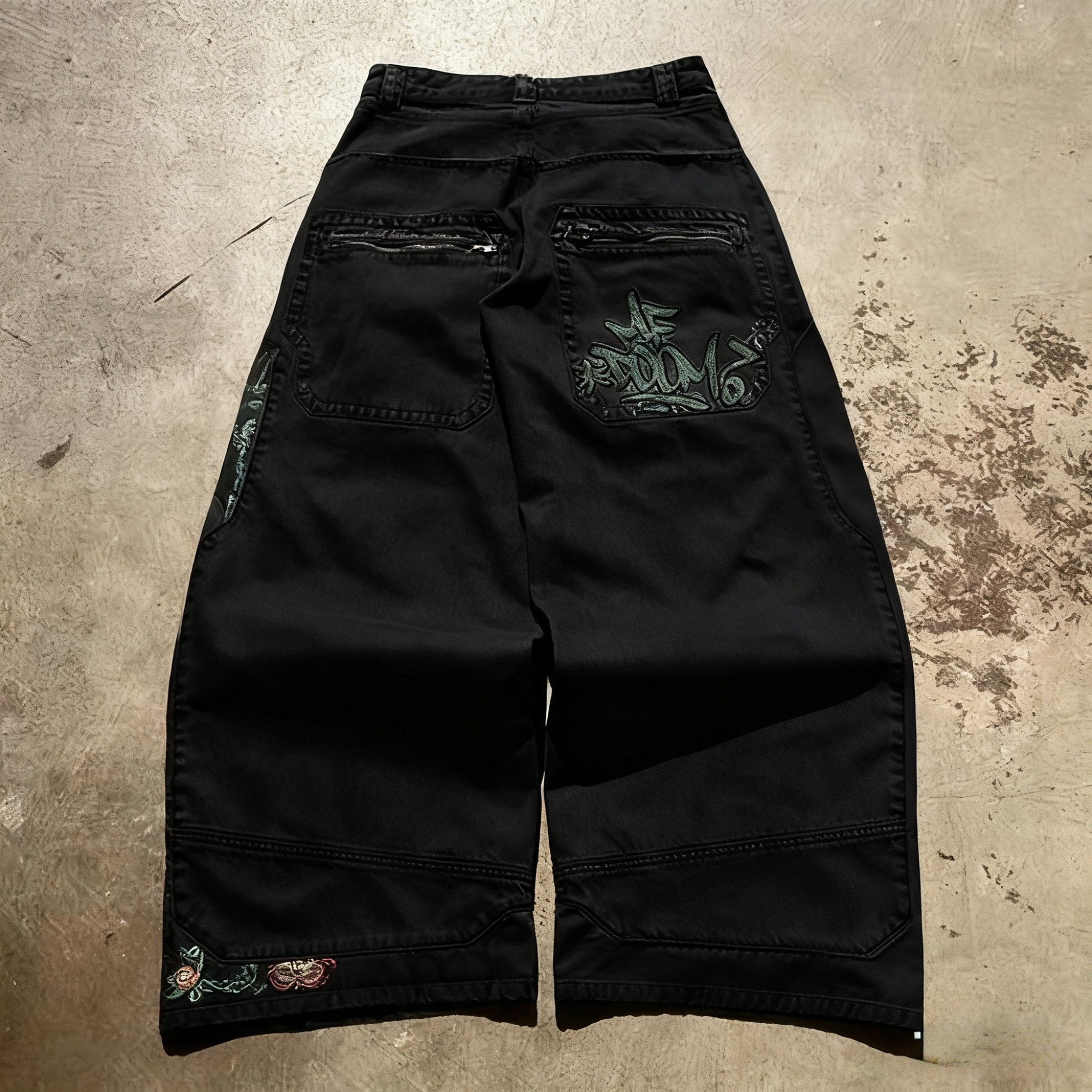 - Baggy, Wide-Leg Fit with a Subtle Flare.