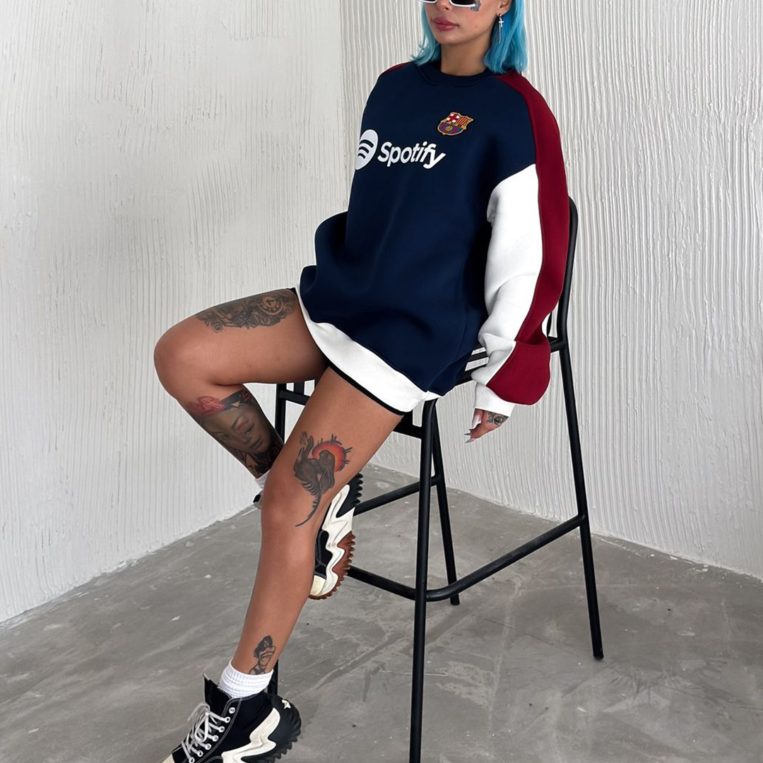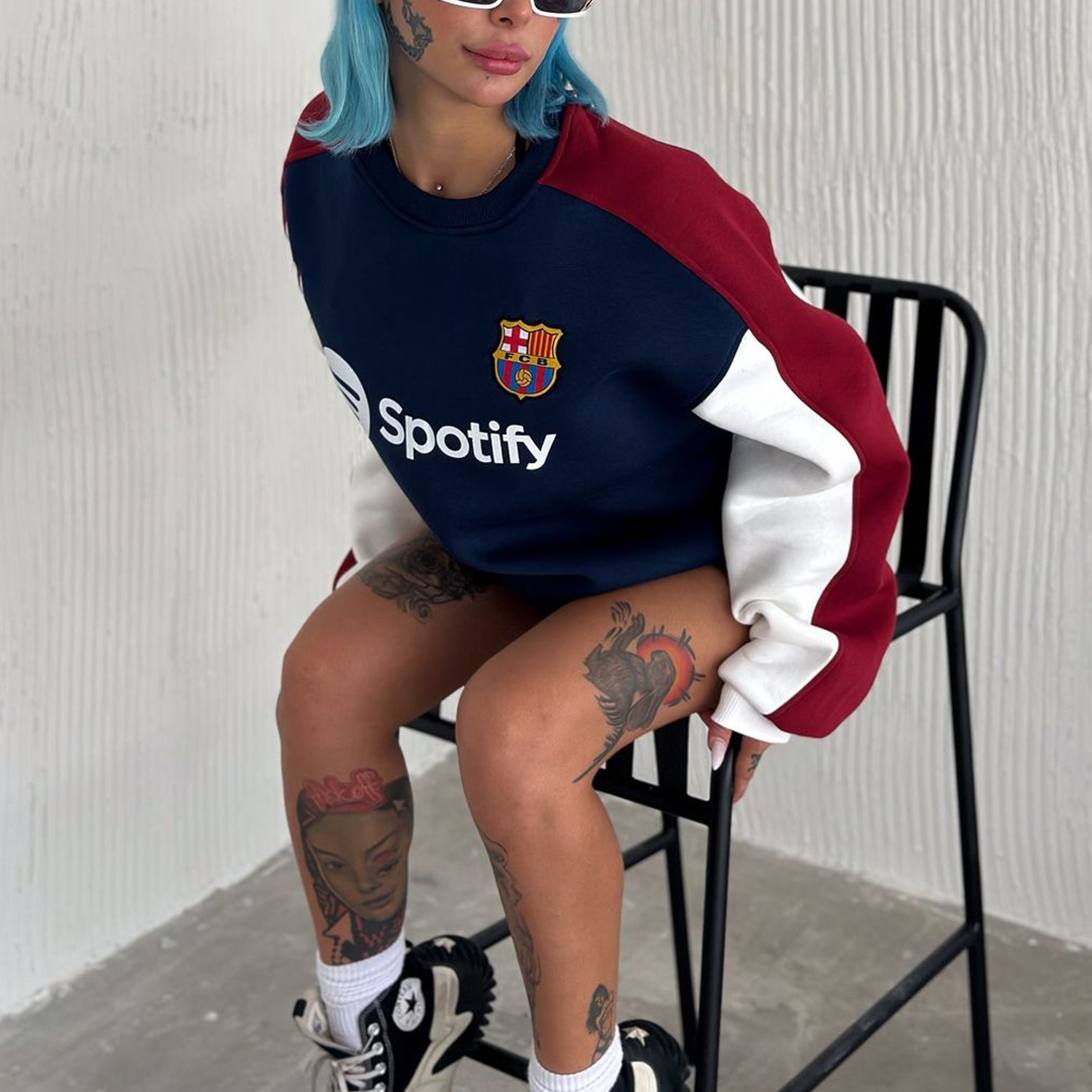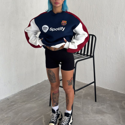 Unisex Soccer Team Embroidered Contrasting Color Sweatshirt